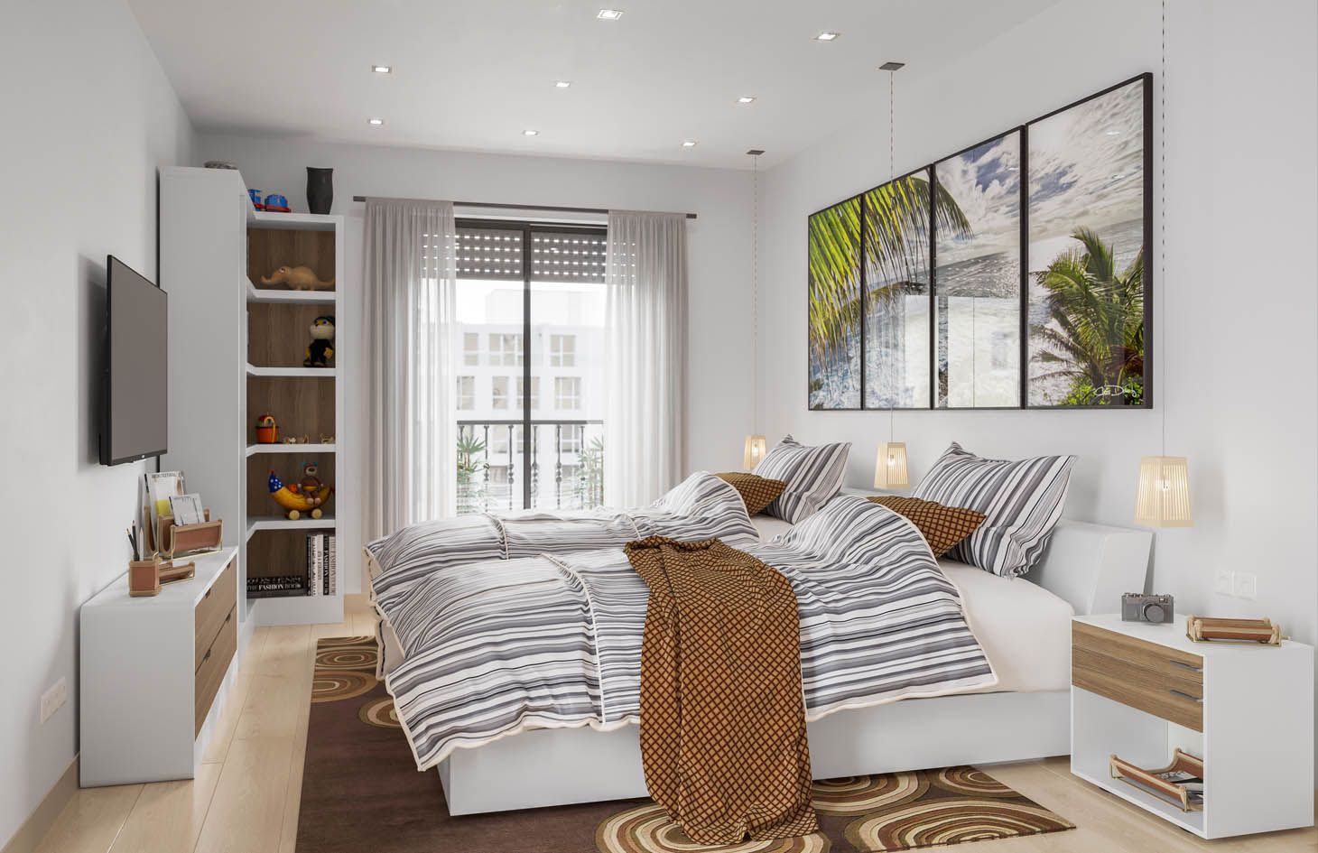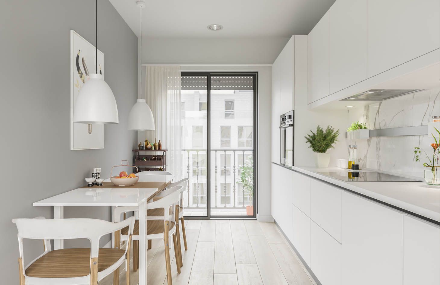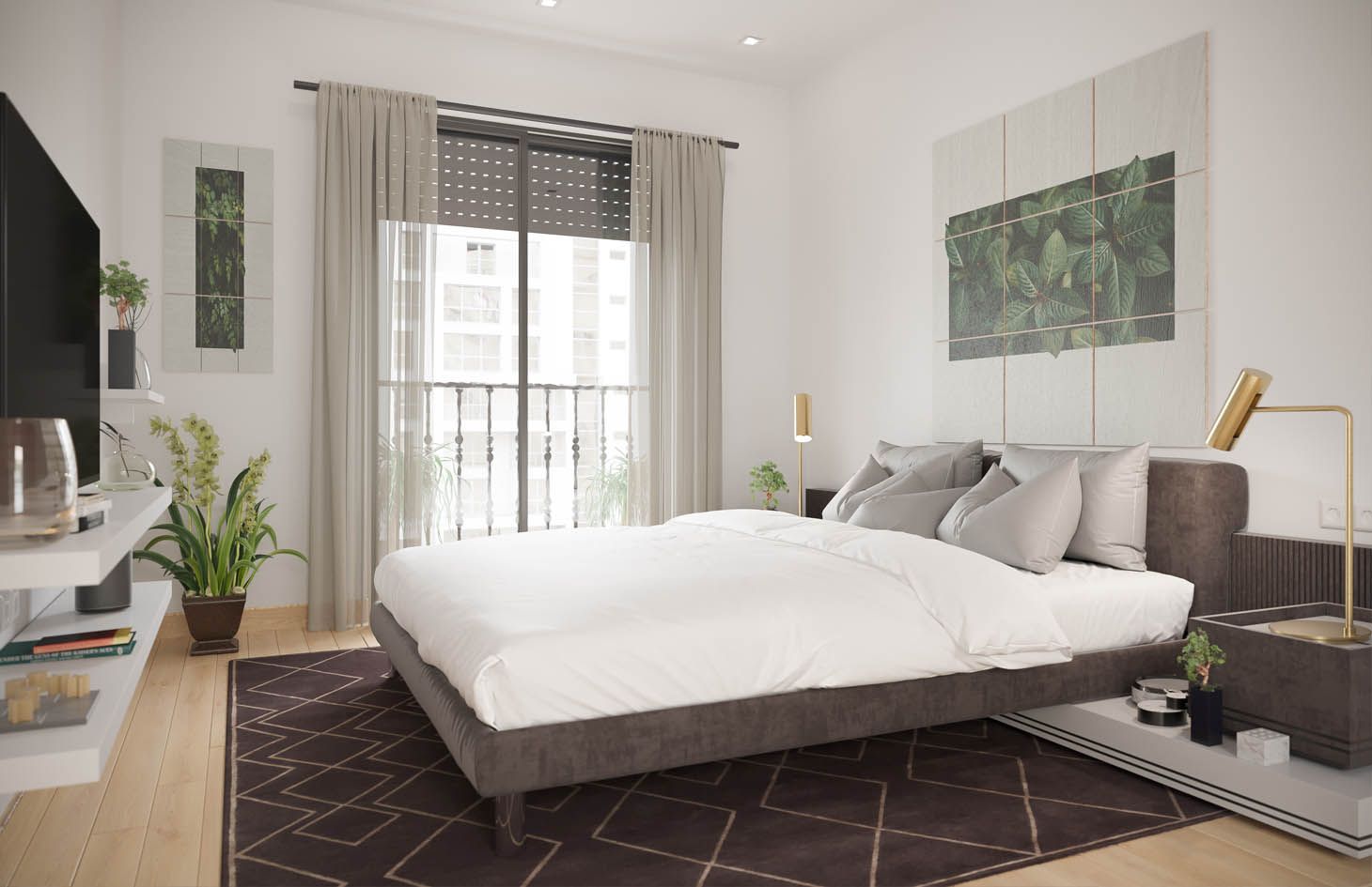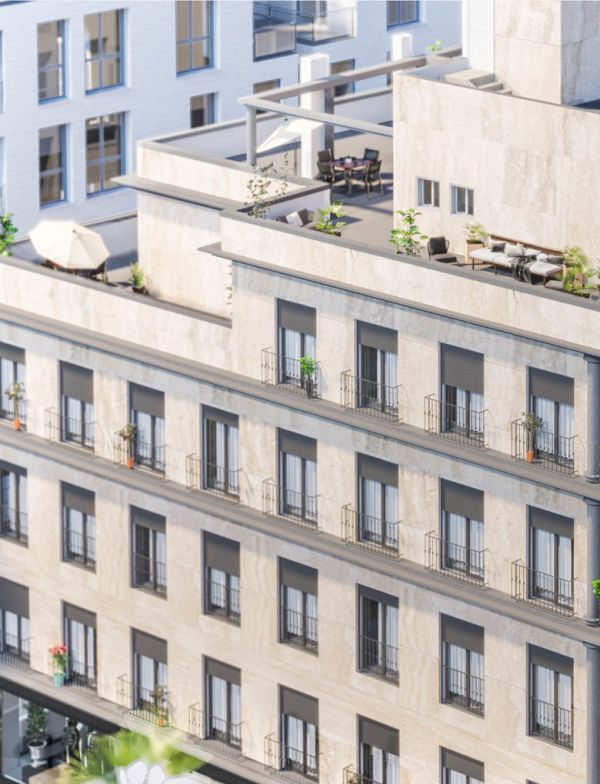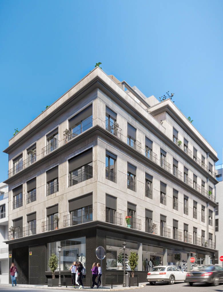 Un edificio con una edificabilidad de planta baja más cinco alturas distribuido en cuatro viviendas por planta, excepto la planta cuarta con tres viviendas y la quinta planta en la que se ha diseñado un ático con grandes terrazas.
